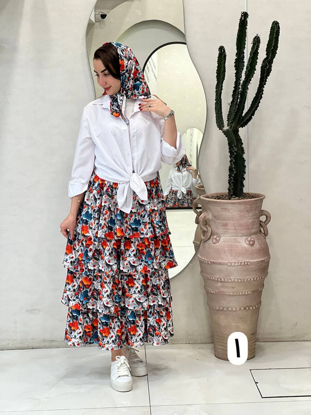 سه تیکه:شامل دامن طبقاتی،شومیز و مینی اسکارف